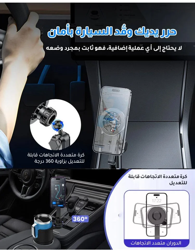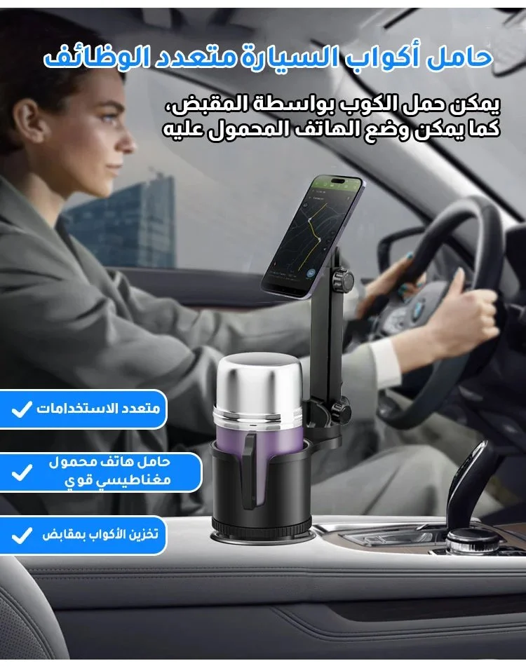 حامل مغناطيسي للسيارة ٢ في ١ للأكواب والهواتف